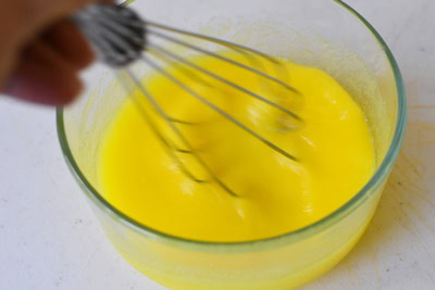 - Ajouter les oeufs ainsi que le jaune d'oeuf (l'ajout du jaune apporte plus de crémeux au lemon curd) et les incorporer.