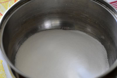 - Verser le sucre dans une casserole, verser une petite quantité d'eau juste pour humidifier le sucre et pouvoir le délayer.