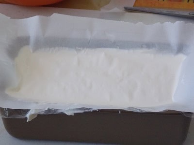 Lisser la surface, couvrir de papier sulfurisé et remettre au congélateur 5h ou toute la nuit.