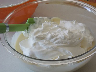 - Ajouter ensuite le reste de la crème liquide montée. A l'aide d'une maryse l'incorporer jusqu’à obtenir une texture lisse (ne pas trop mélanger afin que la préparation ne perde pas de son volume).