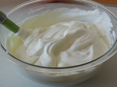 - Battre la crème liquide jusqu’à ce que des pics se forment.