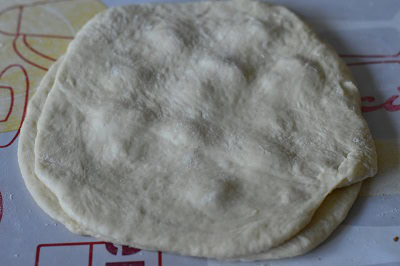 - Étaler la première boule à l'aide d'un rouleau de pâtisserie sur un plan de travail recouvert légèrement de farine.