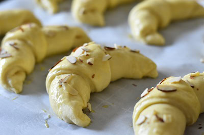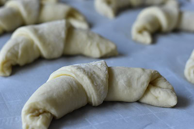 J’ai choisi les croissants natures mais on peut les fourrer aux amandes, chocolat etc.. on peut aussi realiser des pains au chocolat.