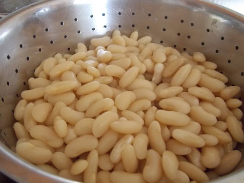 - Après ce temps écoulé égoutter les haricots blancs et jeter l'eau de cuisson.