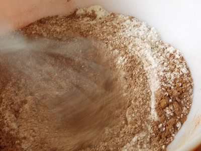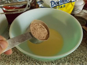 - Dans un saladier, mélanger ensemble les ingrédients secs (farine, sucre, levure, cacao et sel).