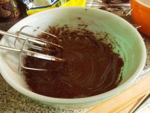 - Battre les ingrédients liquides avec un batteur électrique à vitesse moyenne jusqu’à incorporation totale.