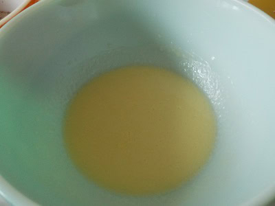 Battre les ingrédients liquides avec un batteur électrique à vitesse moyenne jusqu’à incorporation totale.