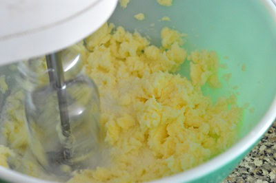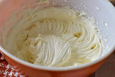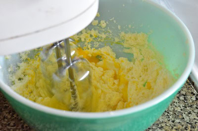 - Dans un saladier battre le beurre et le sucre. Ajouter les oeufs un à la fois et battre après chaque ajout.