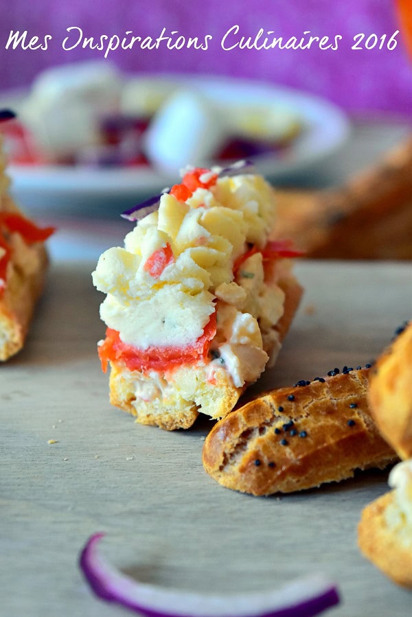 Eclairs au tartare de saumon – pomme et sa chantilly au camembert