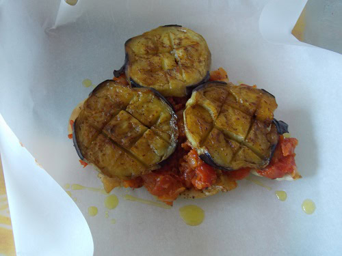 - Entre temps couper en rondelle les aubergines ( je les dégorge en les saupoudrant de sel et laisser quelques minute, elles rendront leur eau).