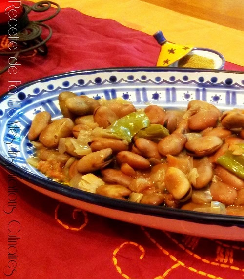Une recette familiale de fèves sèches en sauce, un délicieux plat pour les amateur de cuisine végétarienne accompagné d’un bon pain maison et saupoudré de cumin. Une recette qui me vient de ma soeur qui la prépare souvent. Il faut laisser tremper les fèves sèches dans l’eau au moins 12 h avant de les faire cuire.