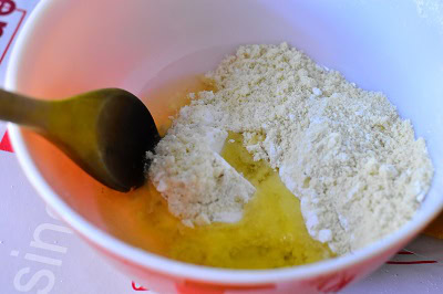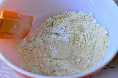 - Dans un saladier tamiser la poudre d'amande, la farine et le sucre glace.