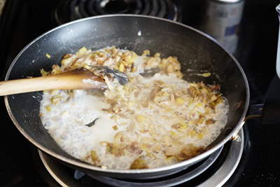 On prépare ensuite une sorte de roux en y incorporant la farine et la crème liquide.