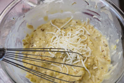 Ajouter le reste des ingrédients (oeuf et gruyère).