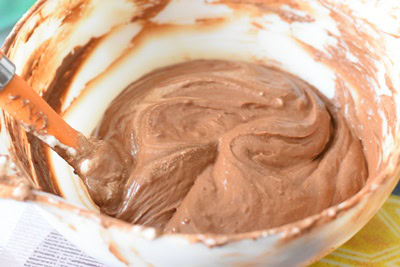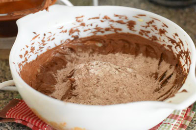 - Ajouter le mélange farine-cacao et incorporer a la spatule.