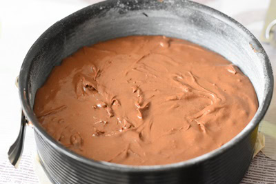 Verser dans un moule à charnière de 20 cm préalablement beurré et fariné.