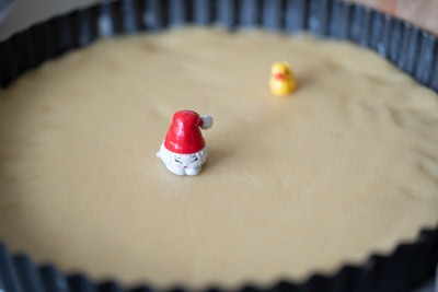 Étaler la galette : Vous pouvez choisir d’étaler la pâte sur une surface de 25 cm entre 2 feuilles de papier sulfurisé, ou la poser au centre du moule et l’étaler avec la paume de la main. Enfoncez la fève, puis lissez ensuite la surface afin de retirer toute trace de doigts.