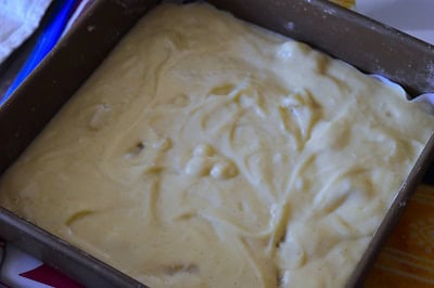 Beurrez et farinez un moule carré (type moule à gratin), ou pour plus de facilité, chemise le fond avec du papier sulfurisé afin de faciliter le démoulage.