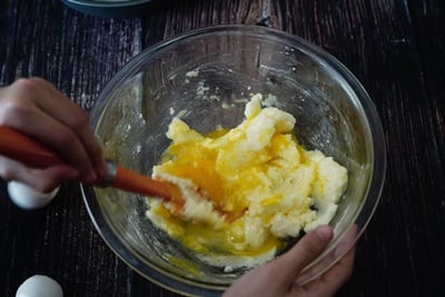 Ajoutez les œufs un à un en mélangeant bien entre chaque ajout pour obtenir une pâte lisse.