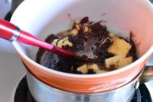Laissez fondre doucement en mélangeant de temps en temps, puis retirez du feu et laissez légèrement tiédir.