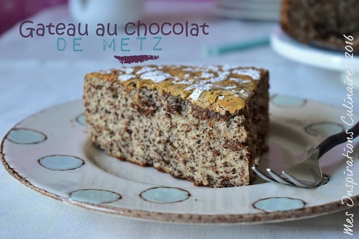 Un gâteau au chocolat de Metz qui a presque fait le tour de la blogosphère que nous j’ai découvert chez Pounchki et dont Corinne m’a fait une piqûre de rappel :). Il est rapide à réaliser le plus long c’est de râper le chocolat.