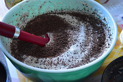 - Ajouter le chocolat râpé délicatement et incorporer a l'aide d'une maryse en soulevant la préparation.