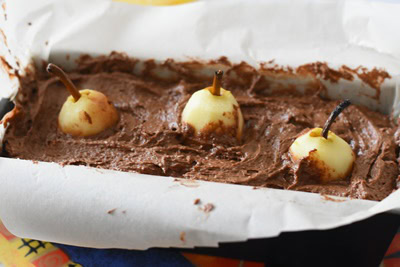 Gâteau au chocolat et poires entières