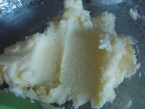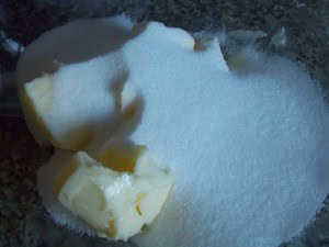 1. Fouettez le sucre, le sucre vanillé ainsi que le beurre mou.