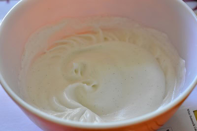 - Battre les blancs d'oeuf avec l'extrait de vanille et 1 c-a-soupe de sucre en neige ferme.