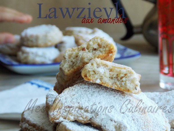 des petits gâteaux secs orientaux d’origine libanaises à base d’amandes entières non pelées et hachées appelée Lawziyeh qui signifie amande. Ces gâteaux sont excellents (sans oeufs) croquants et fondants en bouche leur texture me rappelle la ghribiya {gâteaux algériens}.
