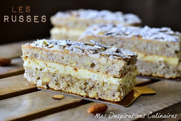 Mercotte dans le meilleur pâtissier saison 3 avait proposé pour l’épreuve technique le gâteau russe que je n’ai pas eu l’occasion de tester je suppose que ce dernier est différent de la version que je vous propose aujourd’hui. Je vous recommande de prendre des amandes entières non mondées et de les mixer grossièrement.