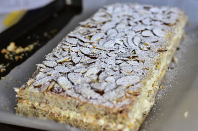 - Parsemer d'amandes effilées préalablement grillées, saupoudrer de sucre glace.
