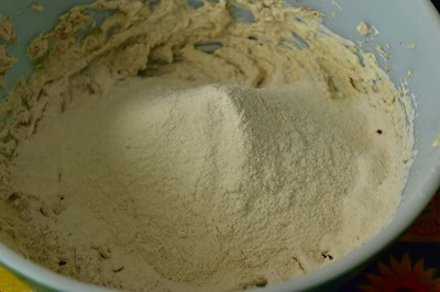 - Ajouter ensuite la farine tamisée et l'incorporer à l'aide d'une spatule. On doit obtenir une pâte malléable sinon ajouter un peu plus de farine.