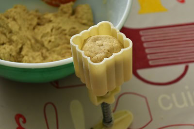 - Façonner les Ghribia aux graines de sésame (des boules de la taille d'une noix) aidez-vous d'emporte-pièce au choix préalablement fariné sinon la pâte risque de coller.