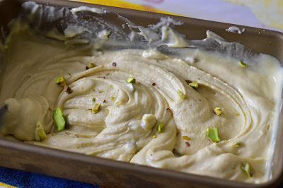 - Sortir la glace du congélateur et mixer à l'aide d'un mixeur plongeant, ajouter si désiré des pistaches concassés.