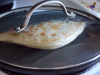 - faire chauffer une poêle et déposer une crêpe et faire cuire une face des que des taches marrons apparaissent sur la partie inférieur retourner la crêpe et badigeonner d'huile d'olive. Couvrir la poêle et cuire environ 45 secondes. Retourner encore une fois badigeonner d'huile d'olive.