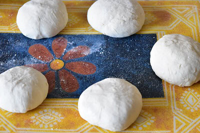 - Partager en 10 boules la pâte. Couvrir et laisser reposer 10 minutes (pour moi 20 minutes car il fait froid en ce moment).