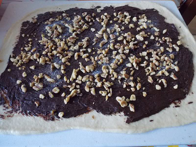 - Étaler le mélange de chocolat uniformément sur la pâte, en laissant un espace de 2 cm autour du bord.