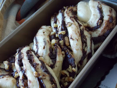 Nous revoilà pour l’épreuve technique 6 du meilleur pâtissier 2015, après la feuille d’Automne, Mercotte a choisi le Krantz cake au chocolat. Une brioche fourré au chocolat et de noix de pécan, roulée sur elle-même, coupée en deux sur la longueur et tressée. Et quand il s’agit de boulange je marque présente, cela fait un moment que je n’ai pas préparé de brioche maison et qu’est ce que ça fait du bien de reprendre, c’est surtout l’hiver que je suis le plus inspirée.