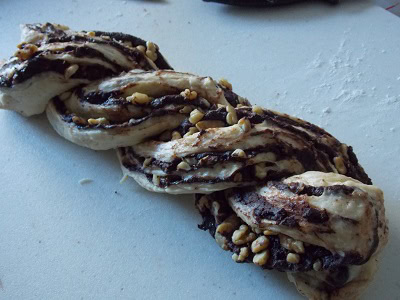 - Tresser les 2 boudins en prenant soin de maintenir la partie découpée vers le haut.