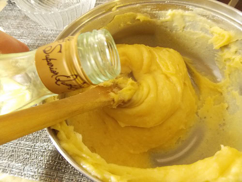 - Retirer du feu et ajouter les oeufs 1 à 1 (il est important de bien incorporer l'oeuf avant de rajouter le suivant comme la pâte à choux) jusqu’à obtenir une pâte lisse.3 oeufs