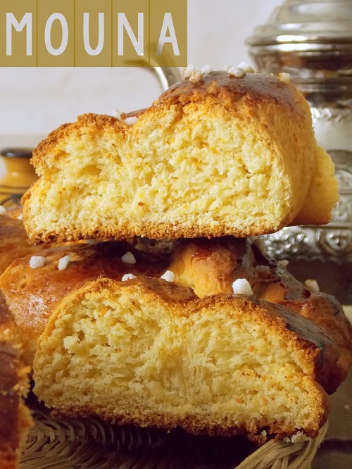 Voici une spécialité algérienne La mona (ou la mouna), une brioche au bon goût d’orange et de citron, j’en ai encore l’eau à la bouche, les souvenirs me transportent vers mon enfance. Car La mouna est originaire d’Oran une ville côtière (ma ville natale). Voila en parlant d’Oran les souvenirs refont surface, la sardine me manque, la karantika (un gratin à base de farine de pois-chiche) et bien entendu la mouna.