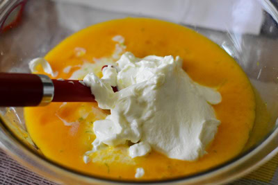 - Verser dans un saladier et ajouter le miel, le babeurre (Lben), yaourt, jus de citron et 2 c-a-c de zeste de citron.