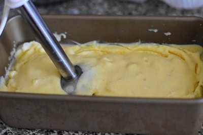 - A l'aide d'un mixeur plongeant mixer la préparation et remettre au congélateur pour au moins 3 heures ou jusqu’à ce que la préparation soit assez ferme.