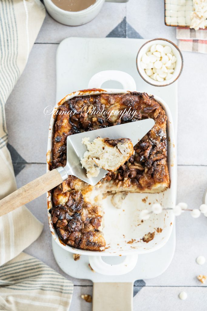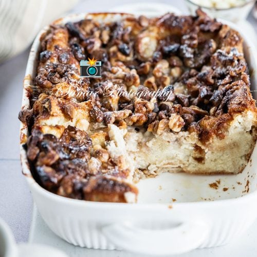 J’ai également ajouté quelques noix à cette recette, car j’adore les noix dans mon banana bread habituel, et cela ajoute du croquant a notre pudding.