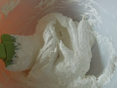 - Dans un saladier propre monter les blanc en neige des que les blancs moussent verser le sucre en 3 fois tout en continuant à battre à vitesse maximale jusqu'à obtenir une meringue brillante et les pics se forment.