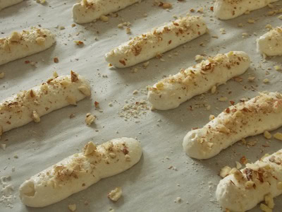 Parsemer la surface des biscuits d’amandes concassées grossièrement.