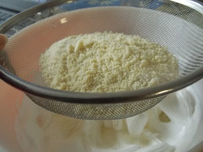 - Dans un second saladier mélanger la farine et poudre d'amande préalablement tamisés.