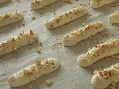 - Parsemer la surface des biscuits d'amandes concassées grossièrement.