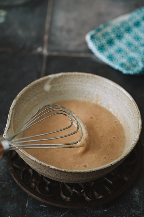 Mélangez soigneusement jusqu’à obtenir une préparation homogène et bien lisse. Vous verrez que la pâte commence déjà à prendre une texture crémeuse.